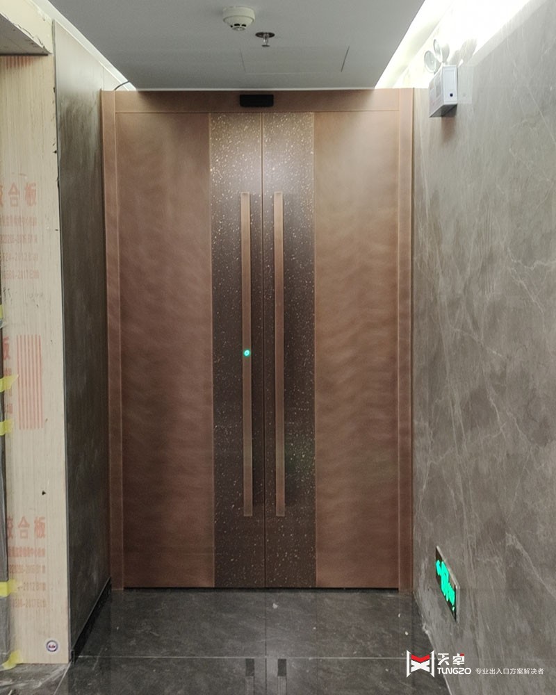 萊安中心在西安市曲江新區,地址是雁展路1111號,占地面積約130畝,投資超過70億。這里是一個超級城市綜合體,有百萬平米的高品質寫字樓和五星級辦公室環境。在這里,辦公室的裝修非常重要,因為它能提升整體氛圍和形象。銅門是很多企業裝修辦公室的首選,因為它不僅美觀大方,而且安全性能好,隔音效果也很好。萊安中心的辦公室銅門由西安天卓提供,寬1800毫米,高2500毫米,采用純銅材質制作,內置電動開門系統和指紋解鎖功能,科技與美學兼具。