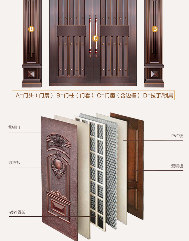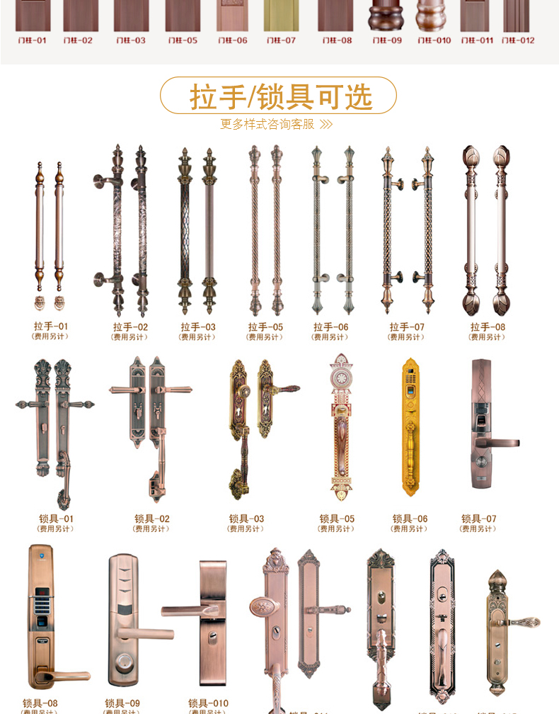 五金鎖具:銅合頁+歐式仿古銅鎖+超B鎖芯防爆鎖體